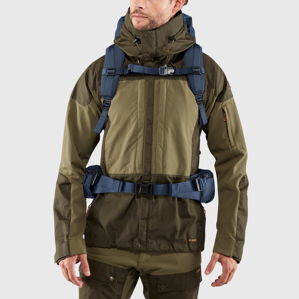 Ergonomic robust backpack for year-round use. It has Fjällräven’s award-winning wooden frame and durable, sustainable materials that will last for many years of adventures in rough terrain. Slim profile gives freedom of movement and its well-planned compartments make it easy to organize gear – like the front pocket that has space for reinforcement layers or a small shovel. The carrying system is designed to distribute heavy loads and can easily be adjusted to suit different back lengths